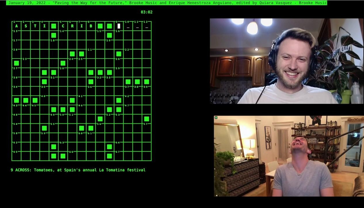 Cursewords Live is a regular Twitch stream where Ross Trudeau and I solve crossword puzzles in the Cursewords software I develop and construct crosswords live with audience participation.